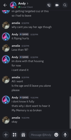 AndyW1377 is a pedophile who dated a 12 year old (ign oGirly_ at the time) whilst he was 21. His whole friend group consists of pedos such as Liz Wayne, Jwabz, and oBumble.